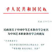随着时代的发展,经中华人民共和国文化部核准,我们的主管单位由“中国中等艺术教育学会”变更为“中国艺术职业教育学会”。
