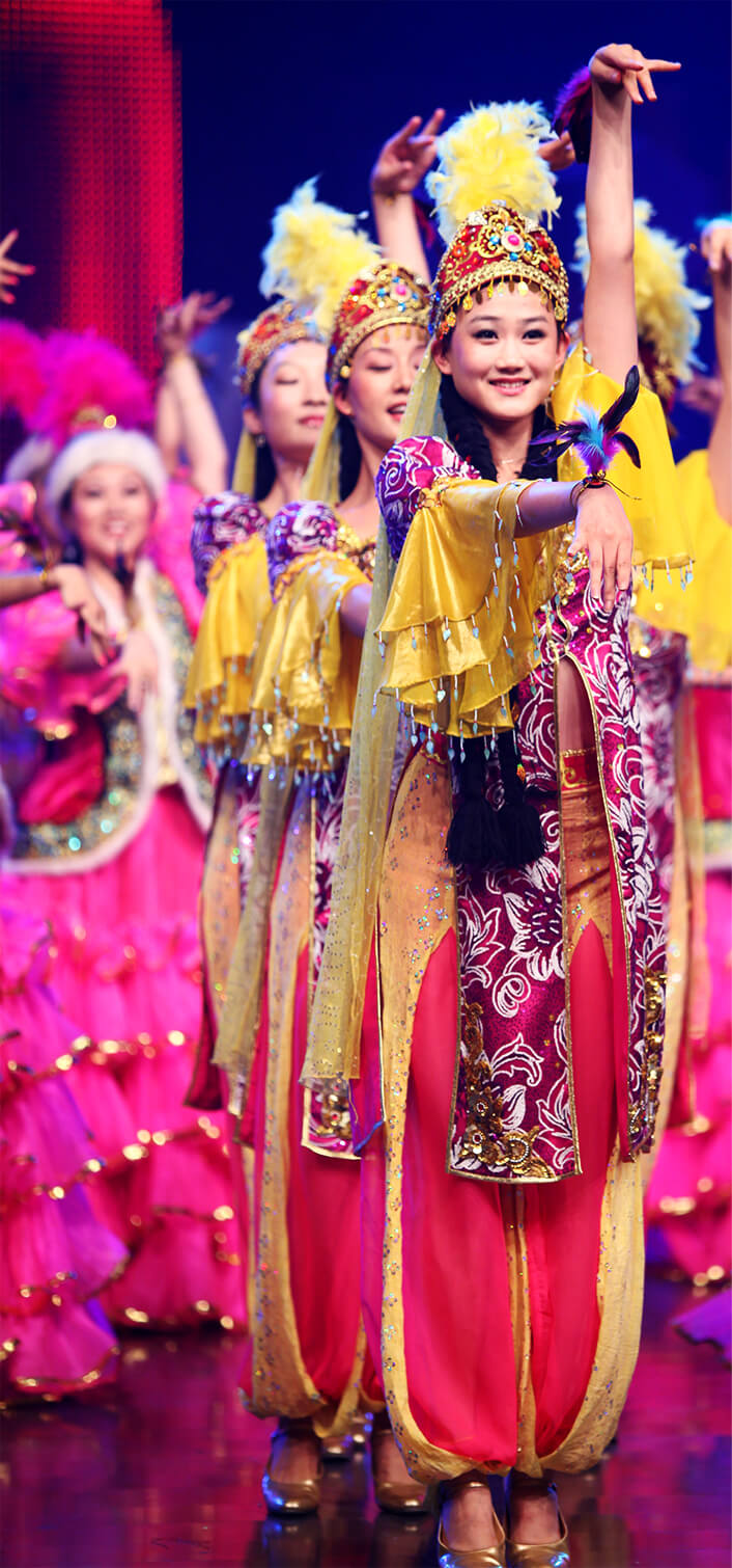 我们受到湖南卫视的邀请,潘志涛老师带领迪丽娜尔老师、于晓雪老师、韩萍老师、白涛老师等专家及高级教师团队来到《天天向上》栏目,向全国观众全方位展示了中国民族民间舞蹈文化的多姿多彩。