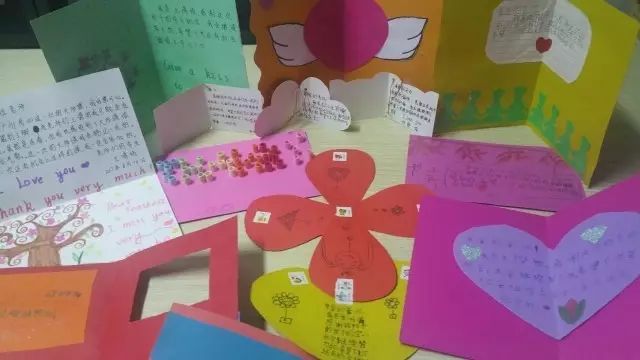 ▲孩子们亲手位老师们绘制的爱心留言卡