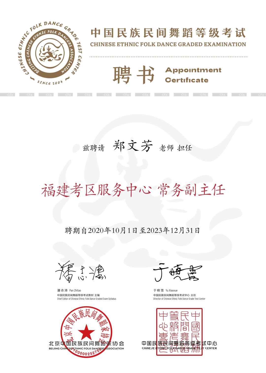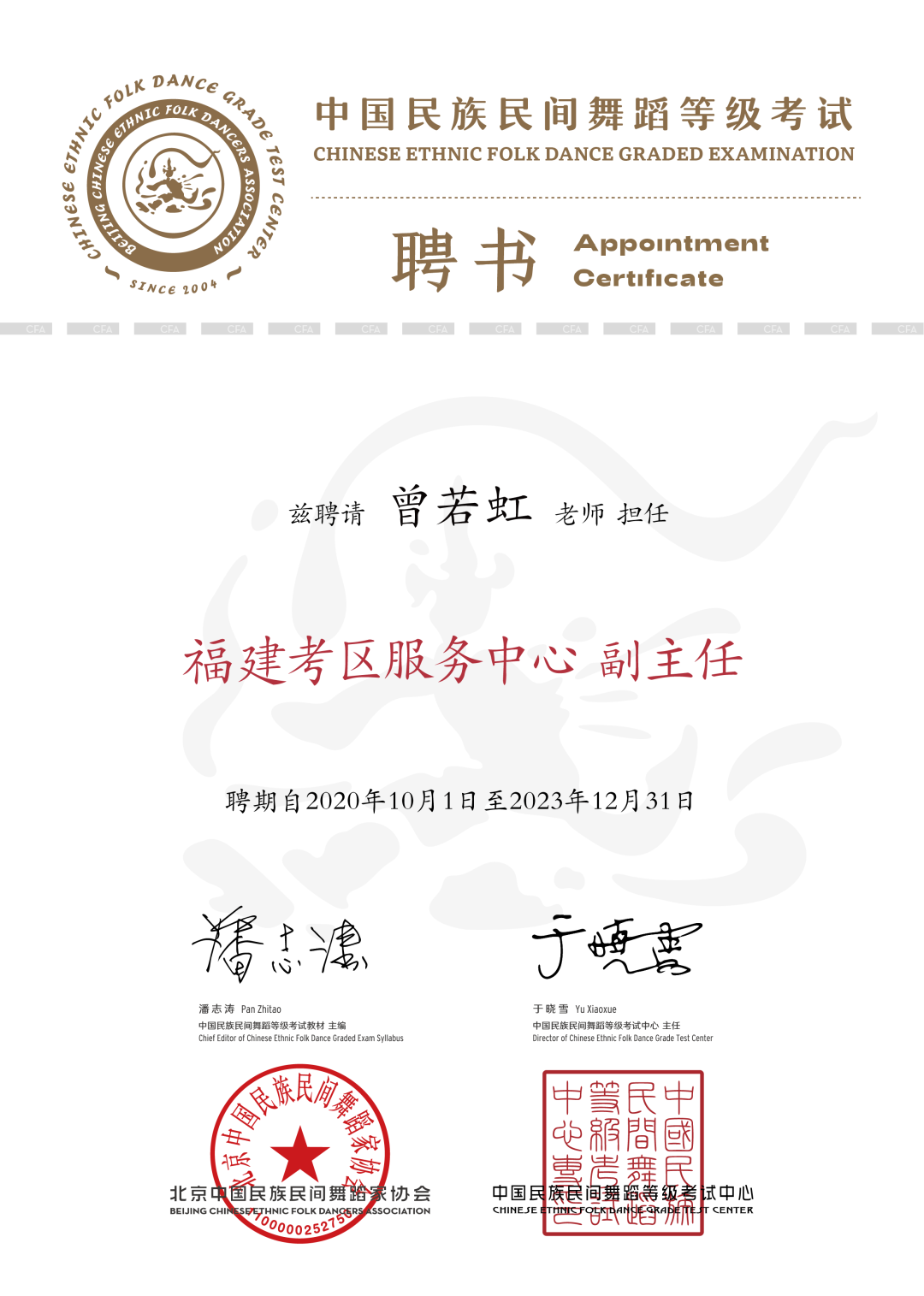 福建教育援助协会 副主任 中国民族民间舞蹈等级考试中心 高级教师