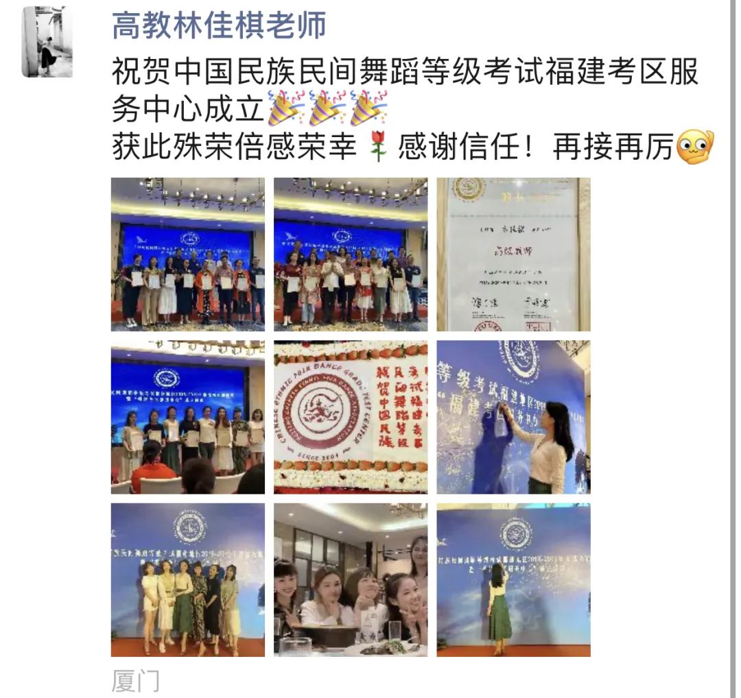 “福建考区服务中心”不只是一个服务考级工作的平台,更是中国民族民间舞蹈人的家园,在这里除了有很多热情服务的工作人员外,我还看到有更多跟我一样不忘初心的小伙伴,认识了很多优秀的领舞者,学到了好多成熟的推广经验。希望“中国民族民间舞蹈等级考试福建考区服务中心”越办越好!