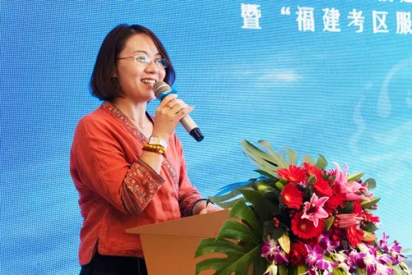 ▲常务副主任郑文芳向大家介绍“福建考区服务中心”团队成员