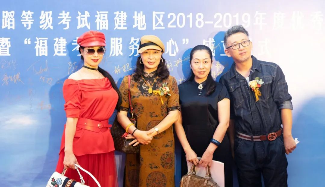 ▲福州晓燕舞蹈工作室杨晓燕老师、福鼎新雨后舞蹈教育施争雨老师与林峰主任、程建榕老师