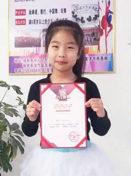 “你对舞蹈的热情只增不减,要一直保持这样的热情呦!每次的考级都是老师们对你的认可,而你也没让人失望过,当然这也离不开‘欧阳艺术中心’的老师们的严格要求,才使你不断成长,我们要对她们说一声辛苦了!希望你在以后学舞蹈的路上,不怕苦不怕累,做到有始有终。”