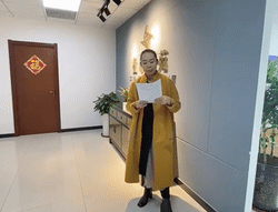 “我是‘育仁艺术拓展中心’负责人,在这里代表机构的老师和学生们感谢‘考级中心’和‘童欣艺苑’的老师对我们培训班的付出与支持。是你们的肯定,给这些喜欢中国民族民间舞蹈的孩子们插上自信的翅膀。”