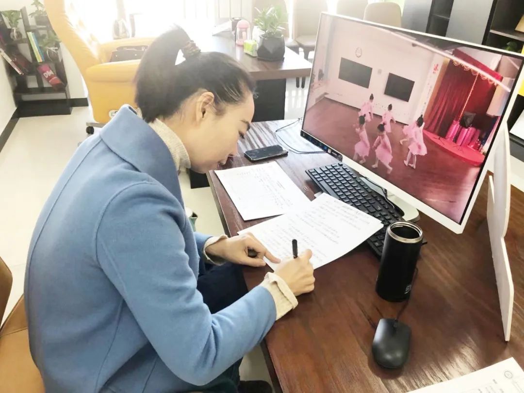 考官吴迪老师在观看视频的同时细心记录下每一个舞目的优缺点,通过视频录制的形式进行逐一点评,并加以动作示范,在教学上给予各机构老师们成熟的建议。