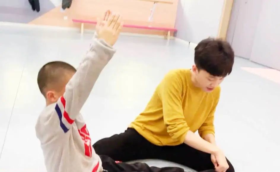 ▲李俊杰老师帮助学生调整《双手对对碰》的动作细节
