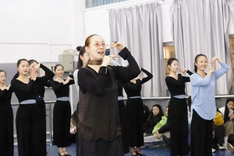 最后,韩萍老师与舞蹈系的老师们进行了教师交谈会。她强调:在教授中国民族民间舞蹈时,要先打好基础,首先解决站和动的问题,并提出教师在教学时要耐心教导,让学生慢慢体会,学会自主学习。