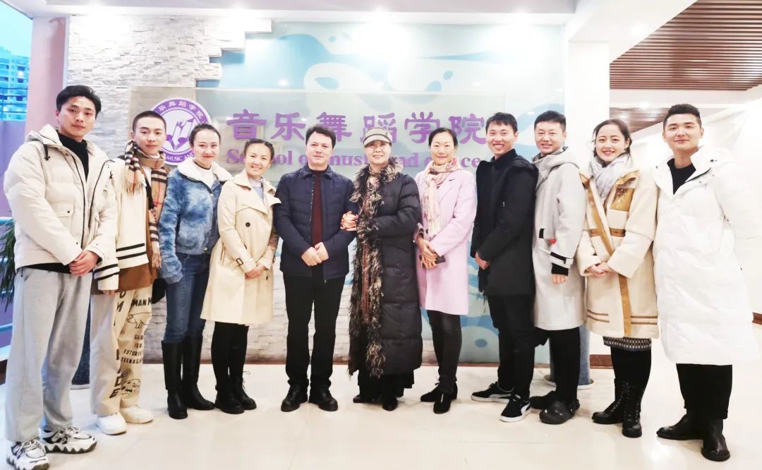 ▲韩萍老师与贵州师范学院音乐舞蹈学院马关辉院长及舞蹈系教师