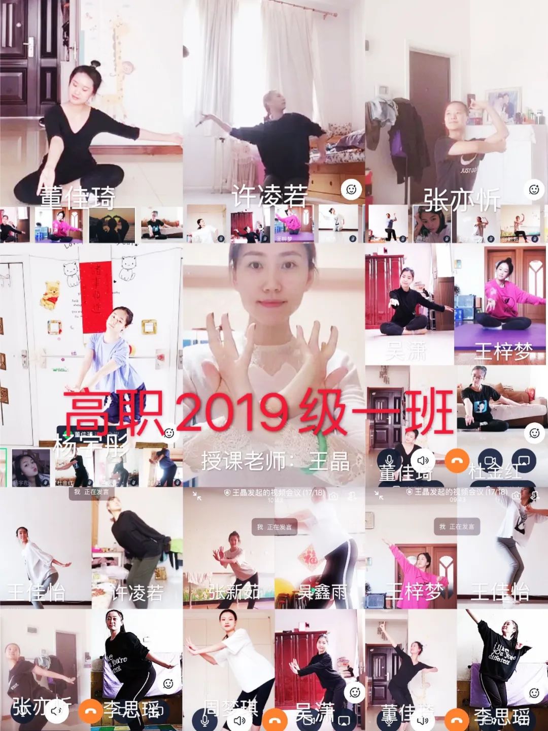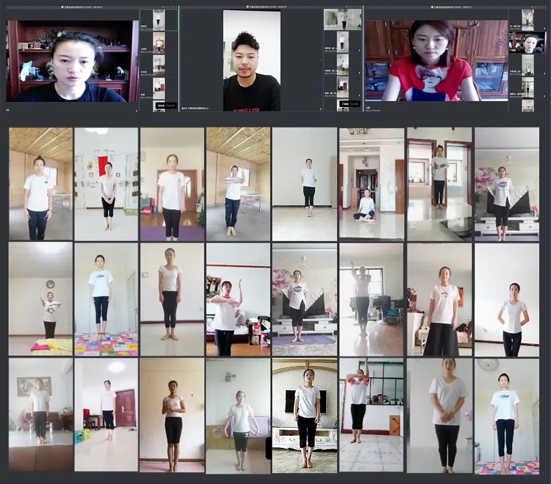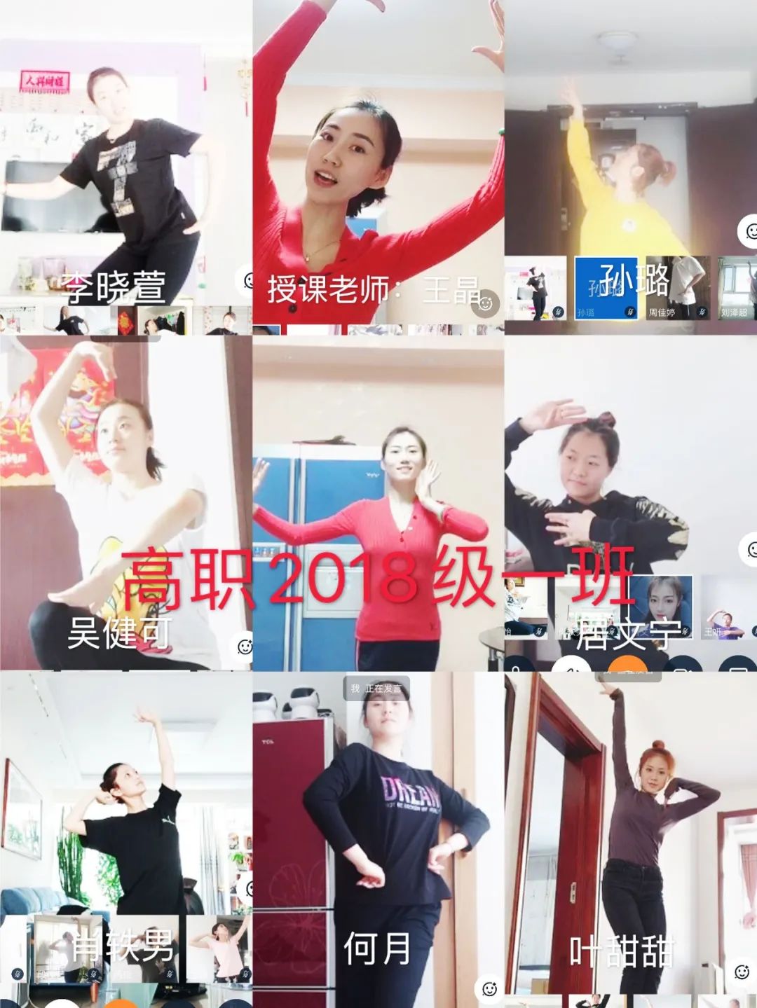 课程共建,满园芬芳。在这个特殊的学期,2018级、2019级高职的老师和学生们,没有因为疫情而耽误课程,共61名学生通过线上直播的学习方式,继续完成了本学期《中国民族民间舞蹈等级考试教材》1-3级、4-6级的课程内容,并于7月14日进行了线上考试。