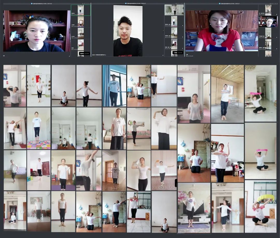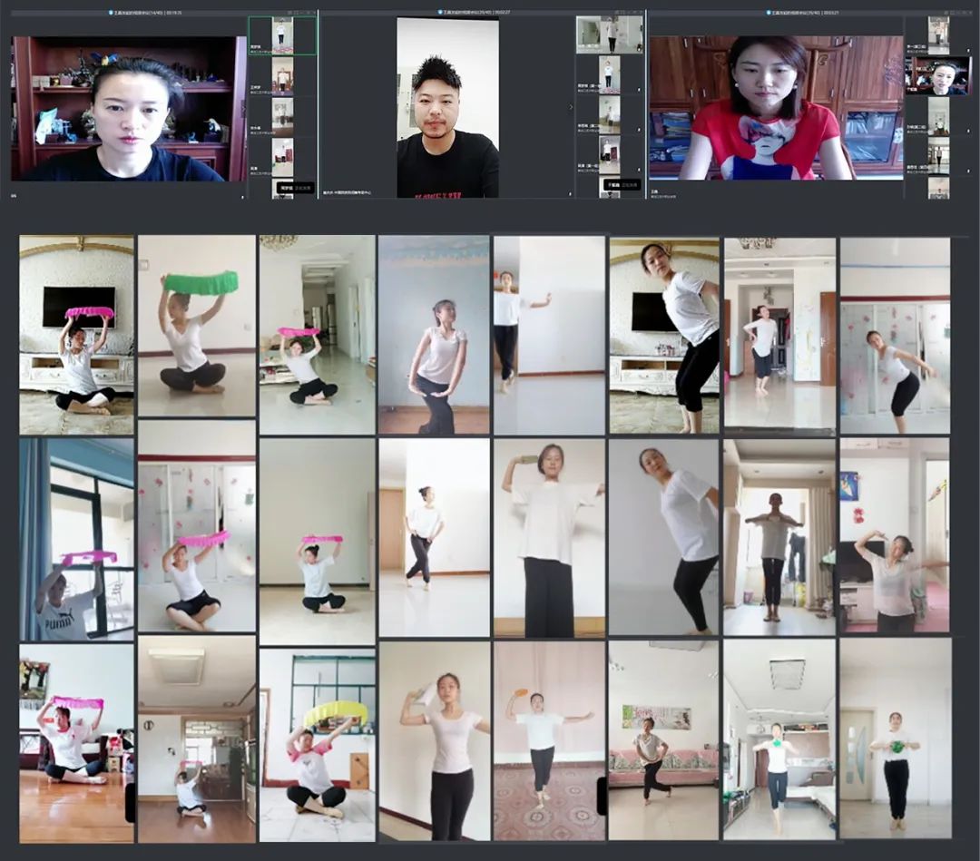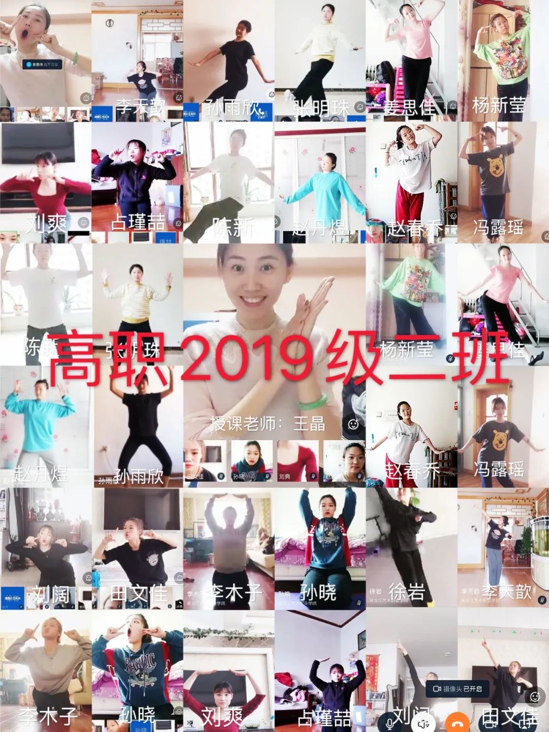 课程共建,满园芬芳。在这个特殊的学期,2018级、2019级高职的老师和学生们,没有因为疫情而耽误课程,共61名学生通过线上直播的学习方式,继续完成了本学期《中国民族民间舞蹈等级考试教材》1-3级、4-6级的课程内容,并于7月14日进行了线上考试。