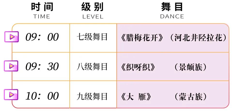 考级中心在“中舞网”直播间特别设有“回看”功能,向广大舞蹈教师、爱好者提供一个可以随时观看、反复学习课程内容的机会。为提高大家的学习效率,每一个舞目课程单独设置独立的回放选项,让学习体验更加直观、便捷。