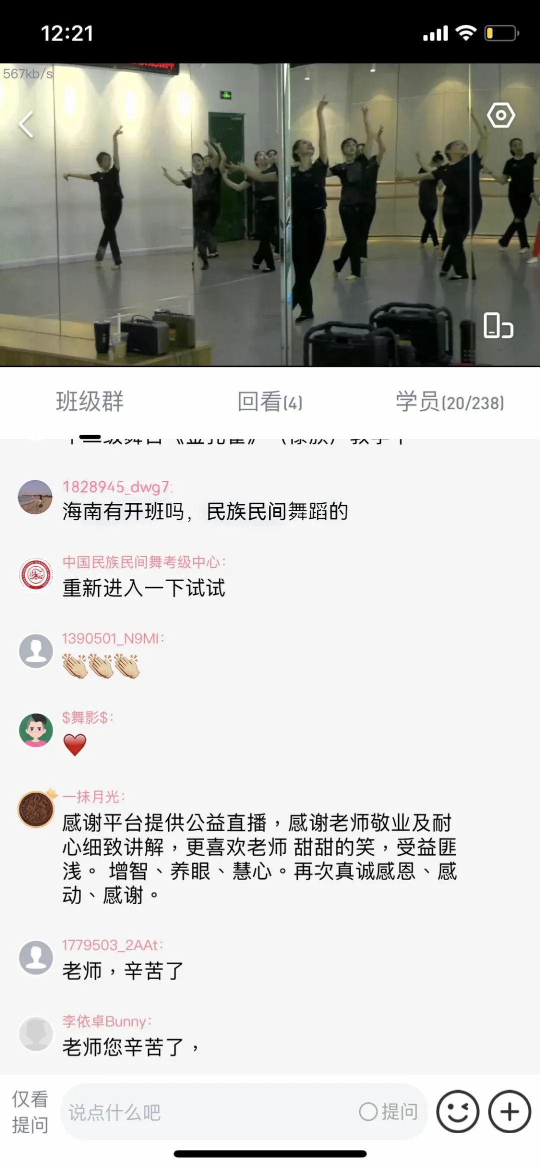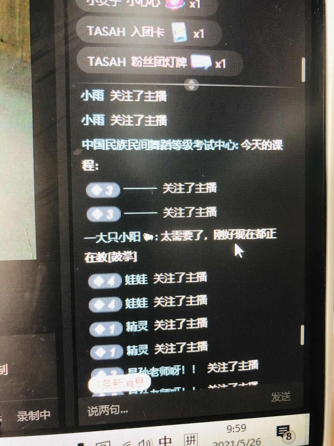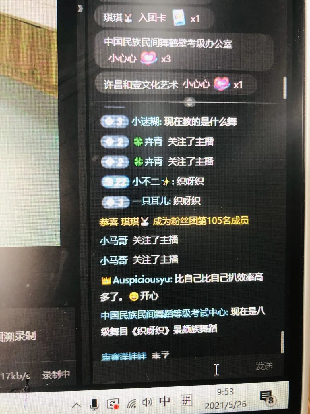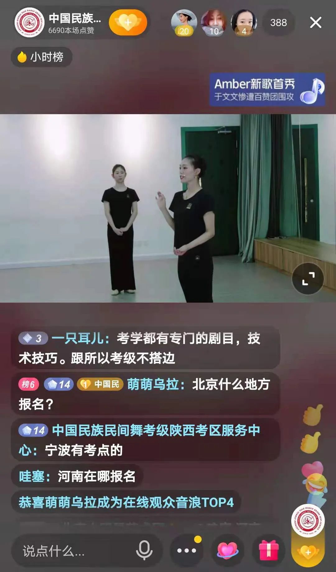 课程直播分别在“中舞网”和“抖音”两大平台同步进行。线上互动频繁而热烈。“中舞网”直播间浏览量激增,“抖音”后台更是留言、私信不断。