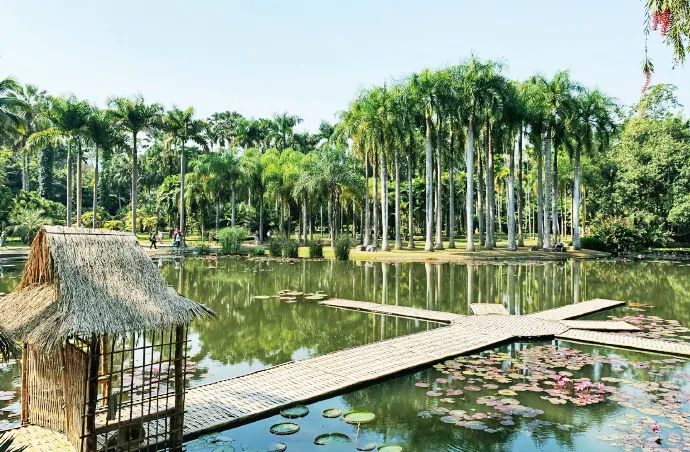 漫步走进棕榈园,体验别样的热带风光。各种棕榈植物千姿百态,于蓝天白云背景的衬托下,格外妩媚多娇。棕榈园是西双版纳热带植物园的重要游览区,它如同一幅婉丽脱俗的动人画卷,又如一首永读不厌的灵秀诗歌。