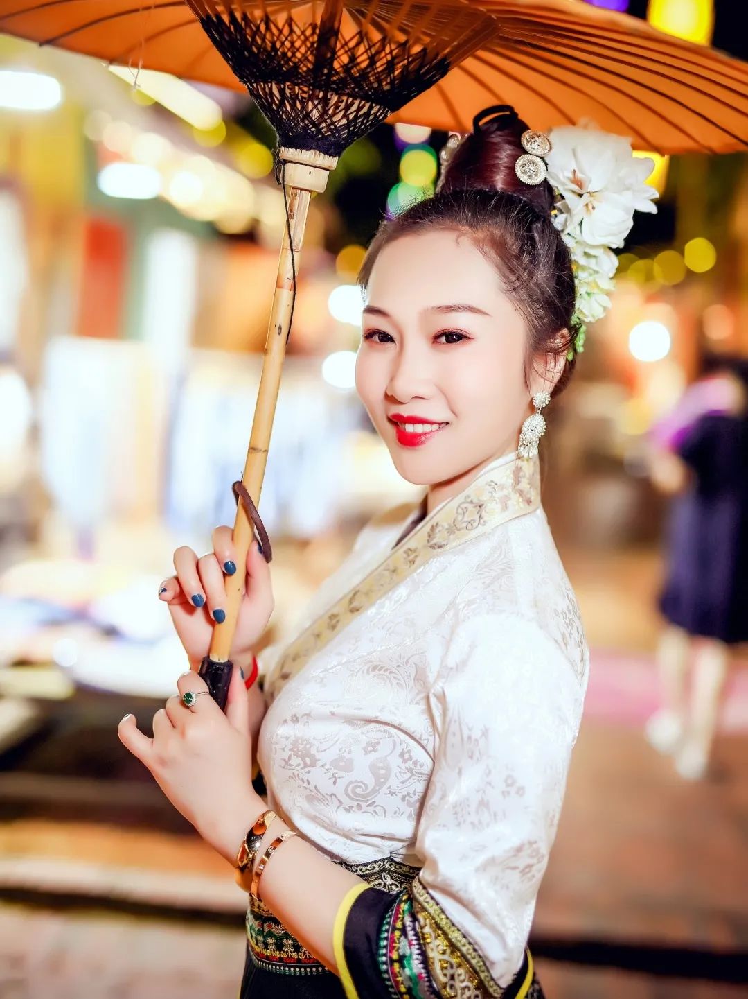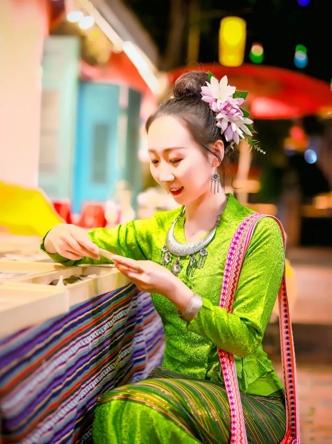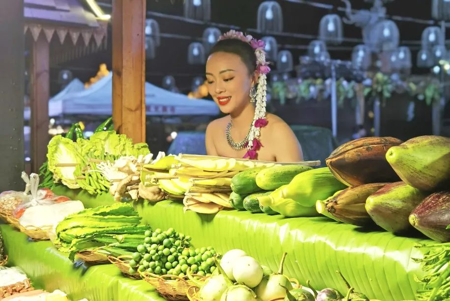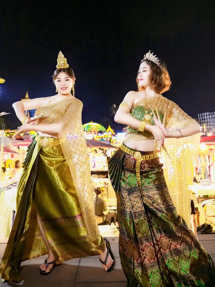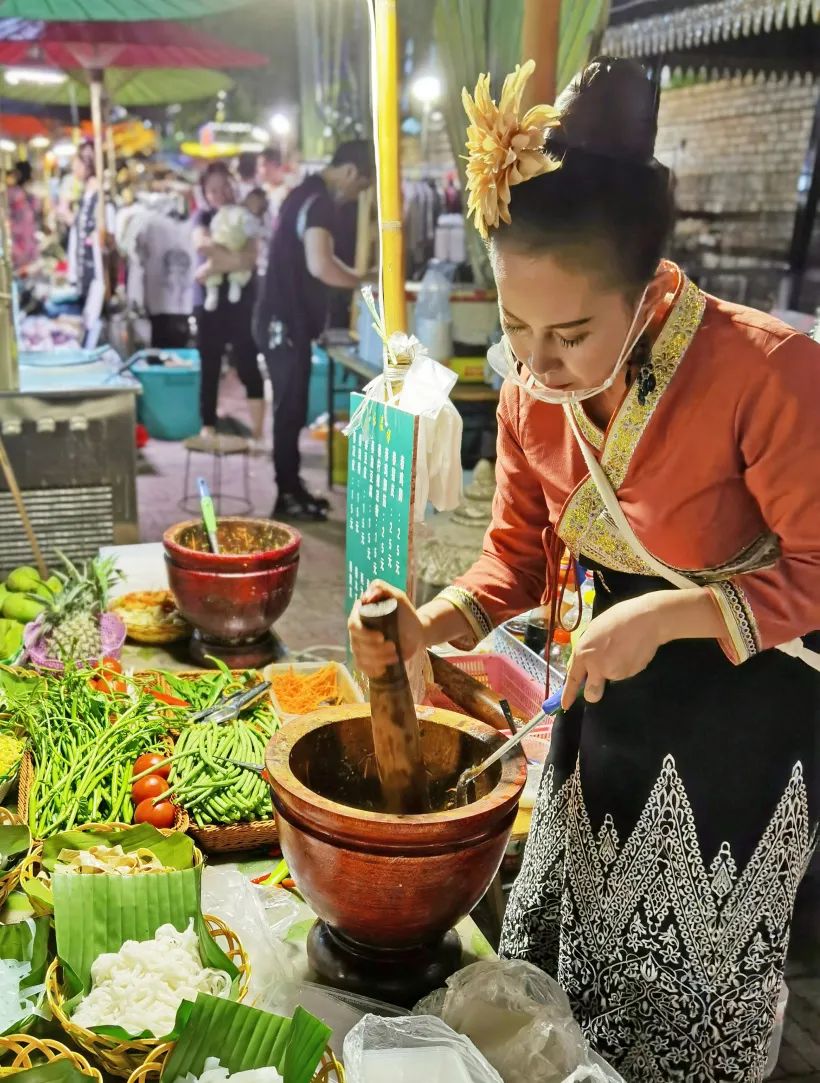 流光溢彩的夜市风情,身着傣族服饰的摊主们,有一种无法言喻的美丽,各式各样的服装、工艺品、美食、土特产品应有尽有。