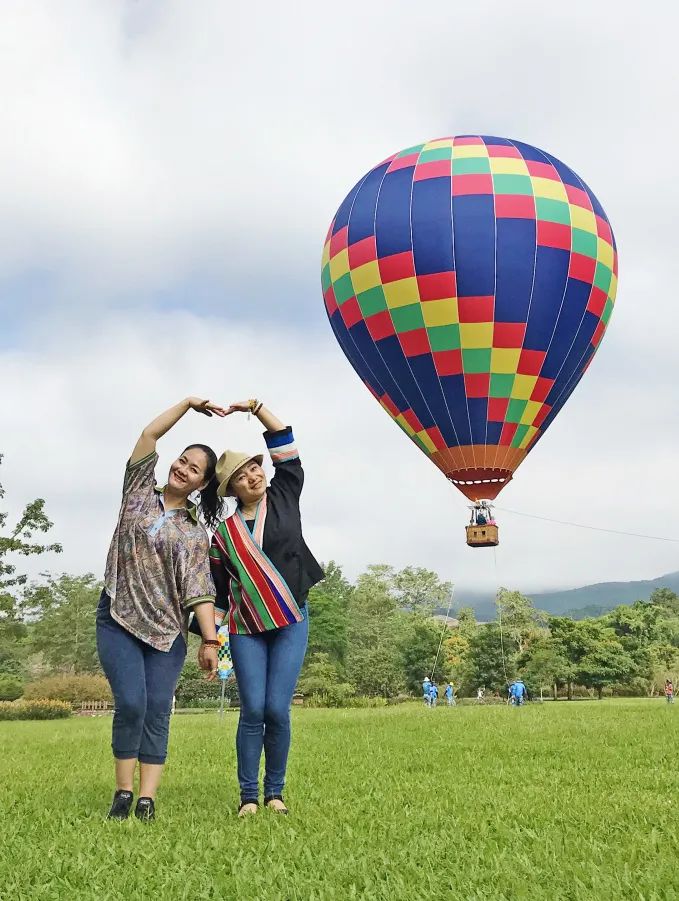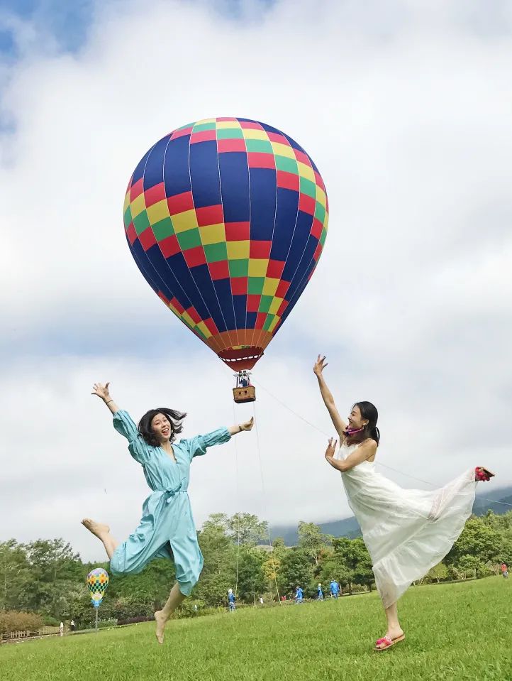 ▲在充满浪漫气息的热气球前拍照