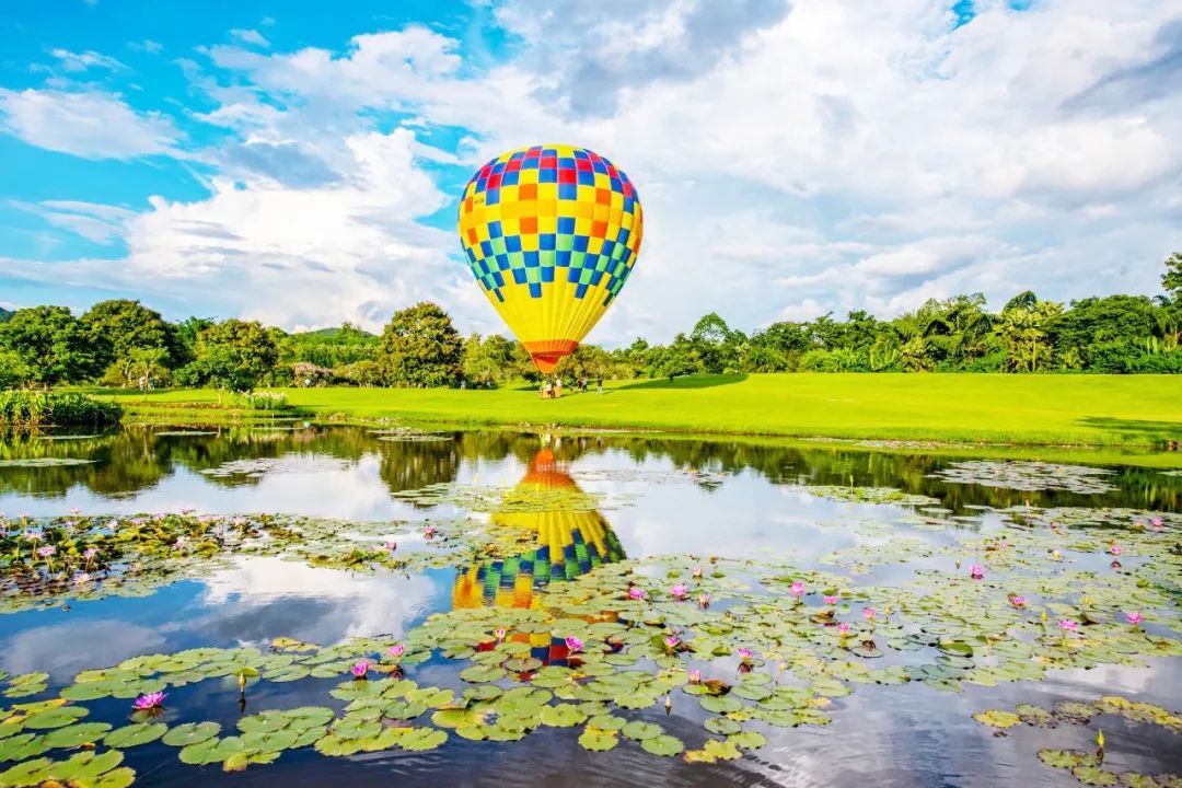 ▲鲜艳的热气球,让郁郁葱葱的热带雨林换发新的生机