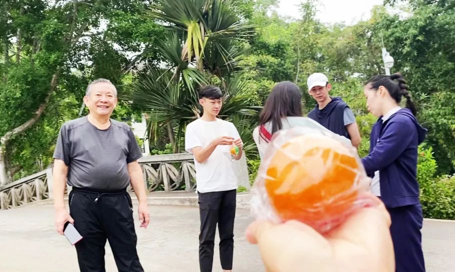 ▲晨练偶遇,感谢潘老师送的小橘子!