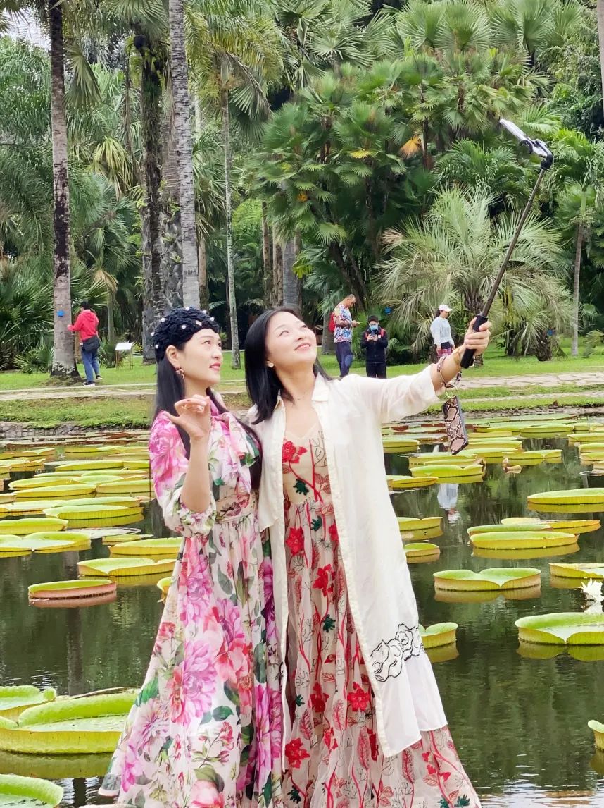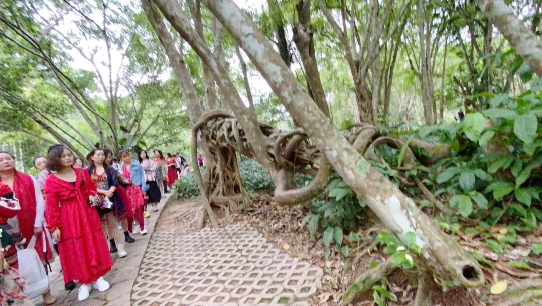 棕榈园内,有来自全球460多种棕榈植物,高低错落的茂密环境非常适合采风团老师们拍照,人景合一勾勒出一幅幅美轮美奂的画面。