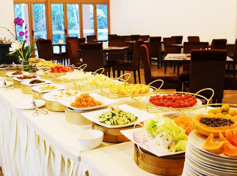西园游览完毕 ,采风团老师们都饥肠辘辘,赶紧奔赴餐厅,享用美味的自助午餐。午餐过后,沉醉在雨林富氧空气之下的采风团,恋恋不舍的踏上了返回景洪市的路途。