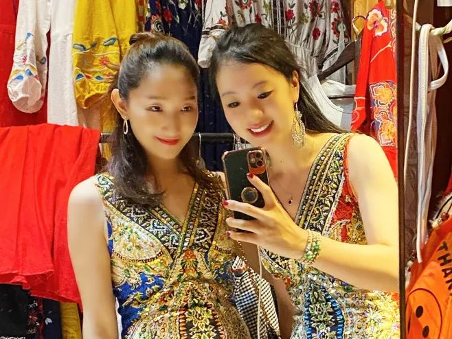 备受采风团老师们关注的,还有独具浓郁民族特色的衣服、包包、饰品等。傣族的服装真的太好看了,随便一身,无论任何纹路质地,穿在身上都是好看的,瞬间秒变傣家姑娘。