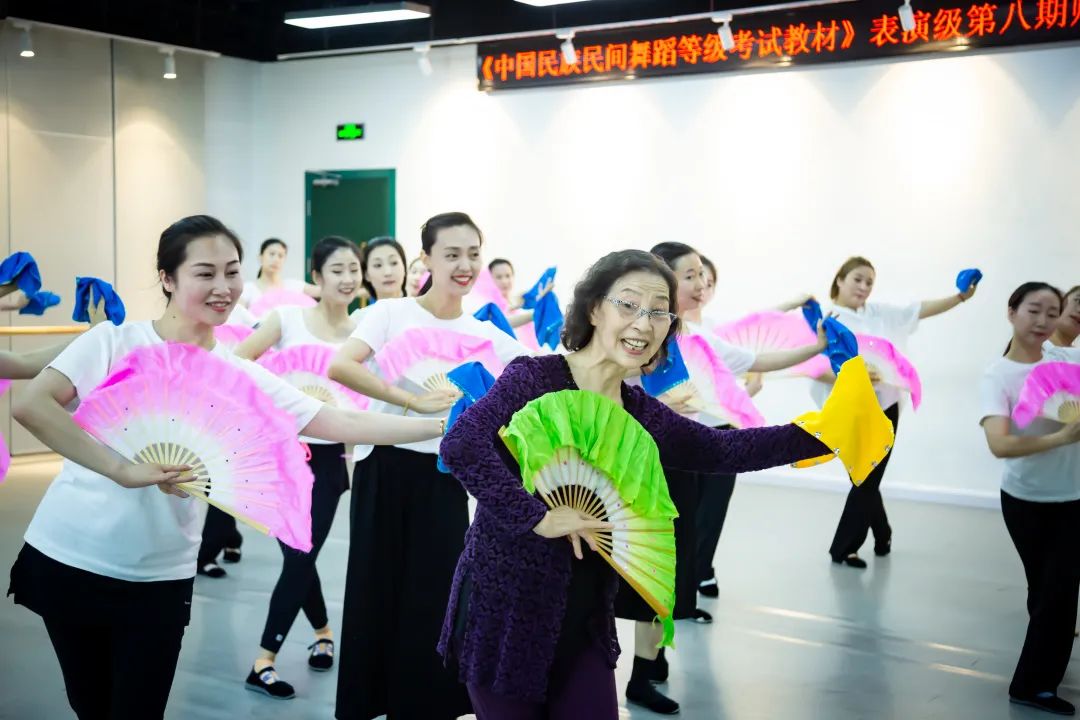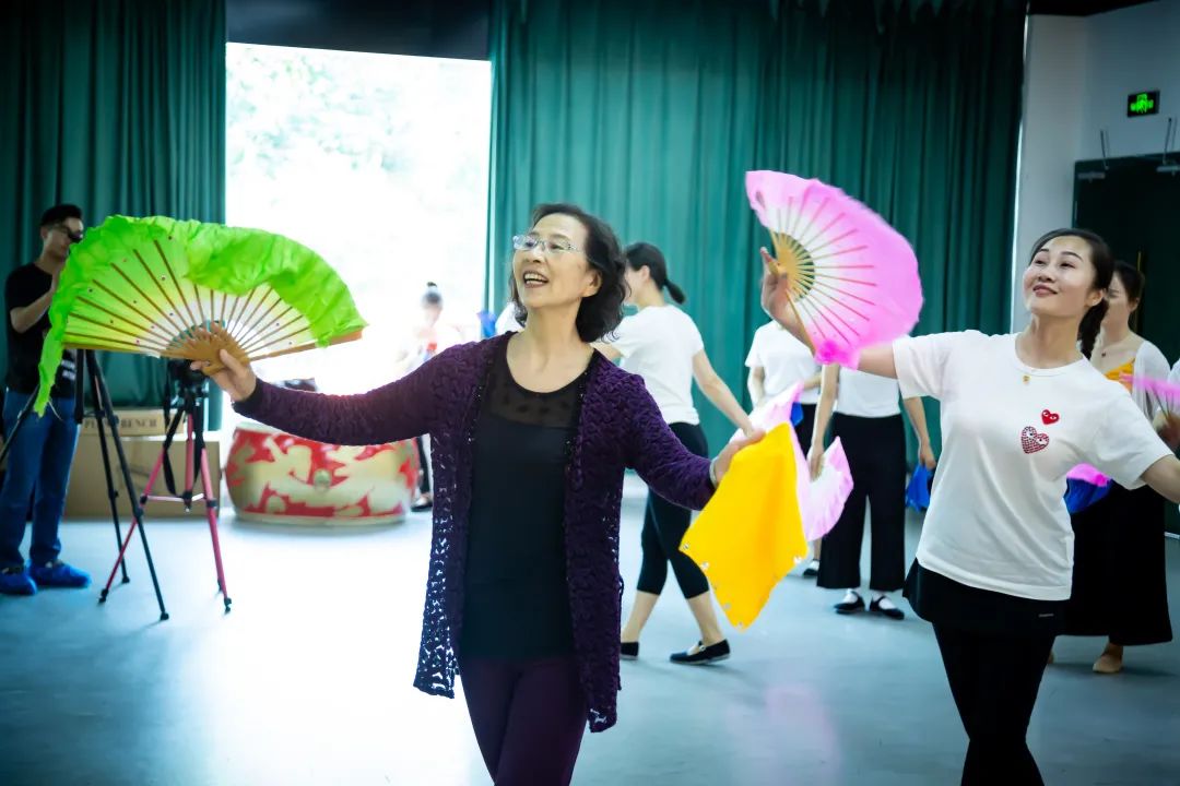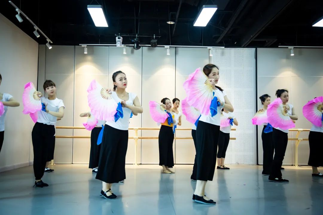 课堂中,娄楼老师通过讲述基本姿态、基本步伐、扇花做法这三大部分带学员们走进了淮河文化,安徽花鼓灯的世界。