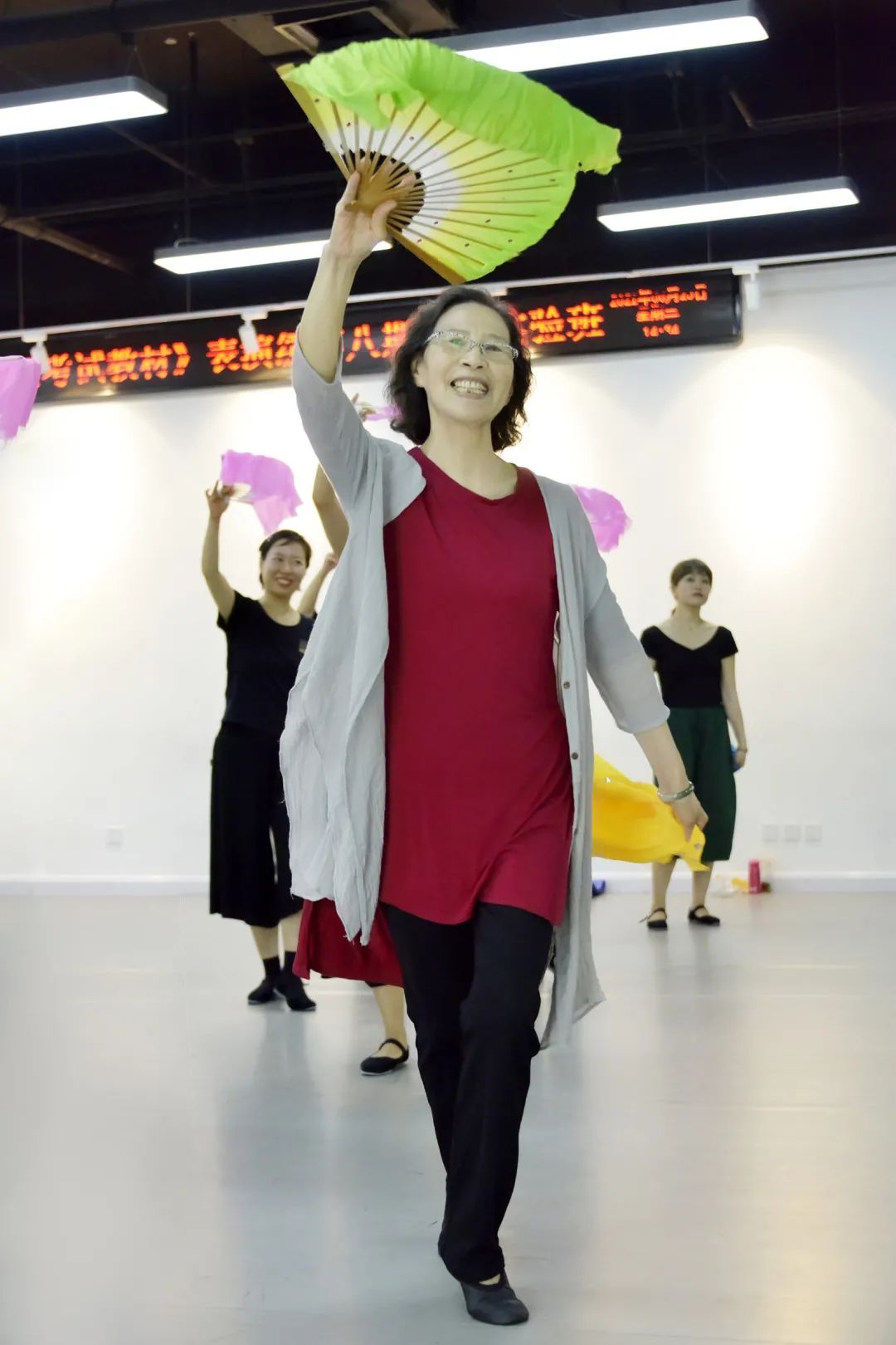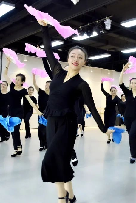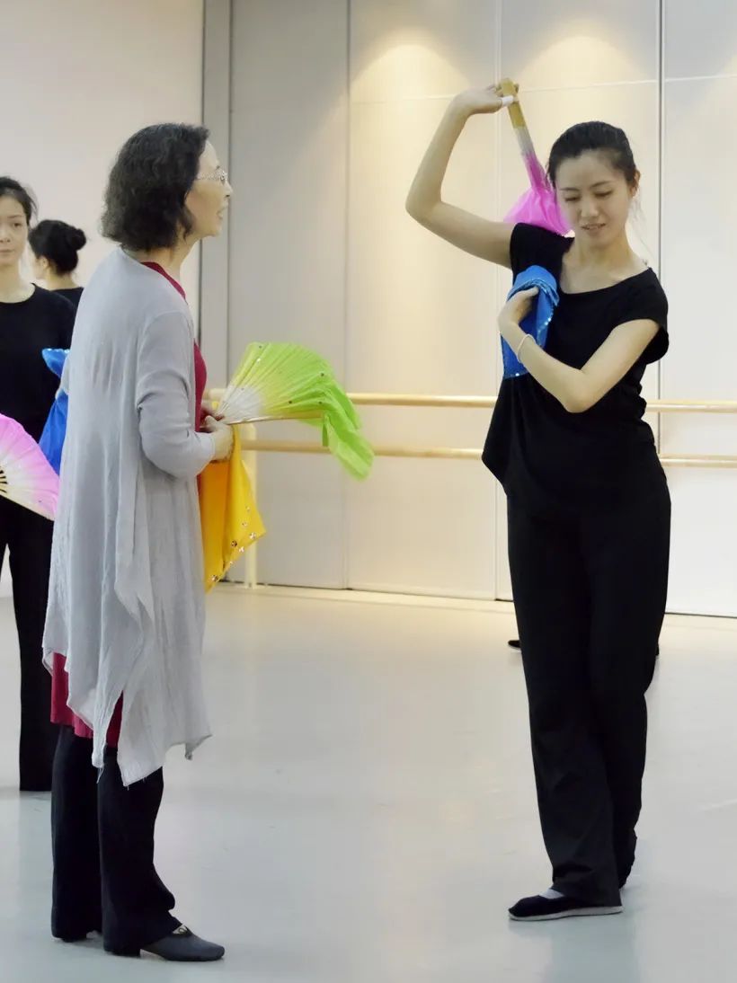 ▲教授学员们正确的拿扇位置