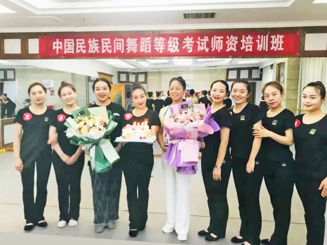 短短几天的培训接近尾声,虽然大家的民族、职业各有不同,但热爱舞蹈、知恩感恩的心却是相同的。为了感谢高教与考官老师的辛勤教导,学员们在考试后为她们献上鲜花与蛋糕,用深深的鞠躬表达内心最真挚的谢意。