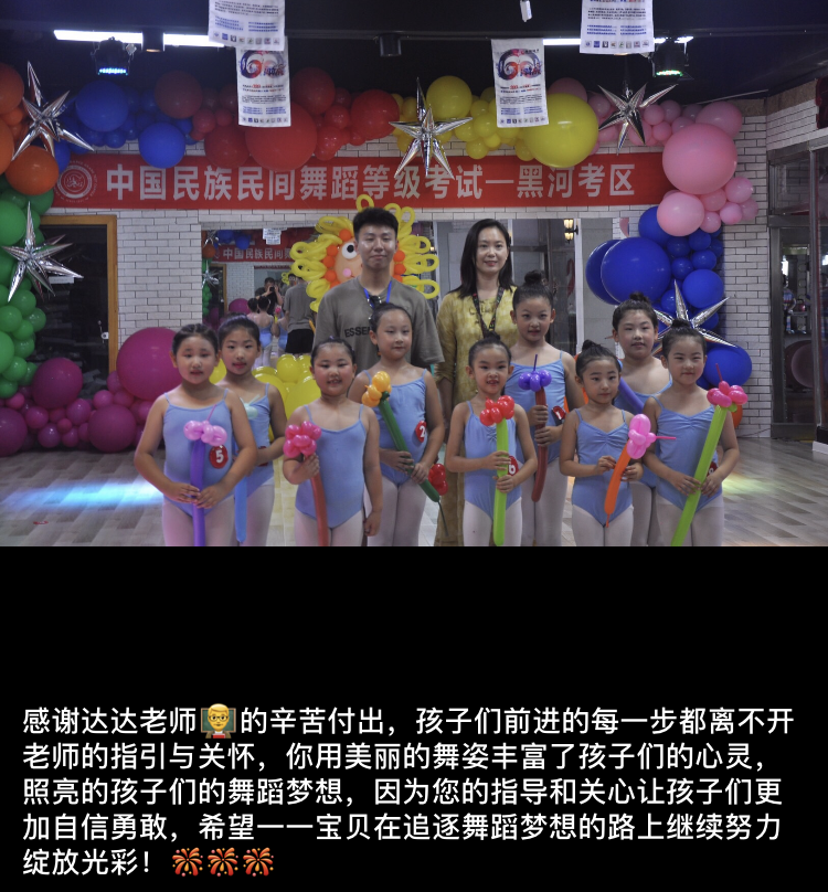 与中国民族民间舞考级️中心相携十二年,历经风雨。今天取得的骄人成绩,离不开黑河承办机构负责人徐影老师给予我们的支持、鼓励、引领!感谢缘分,让我们能够相遇;感谢陪伴,我们彼此扶持、携手走向光明的未来;感谢时光,将彼此友谊酝酿得更加深厚;感谢帮助,点滴进步均有您的支持。今后我们将继续努力,再接再厉,让我们共同期待美好的明天!