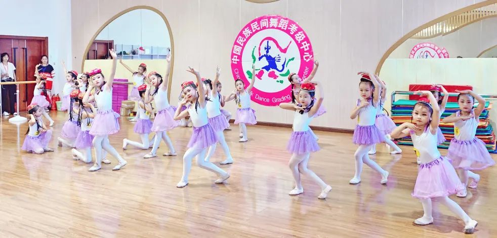 获评为中国民族民间舞蹈等级考试“指定培训教室”的五家机构的400余名学生,参加了《中国民族民间舞蹈等级考试教材》女生版1-12级、男生版1级的汇报展示。北京中国民族民间舞蹈家协会 考官 张姝老师,亲临现场为孩子们考核并进行细致点评。